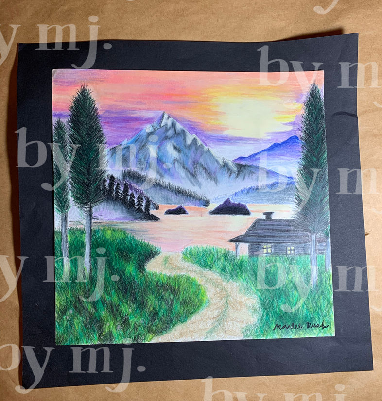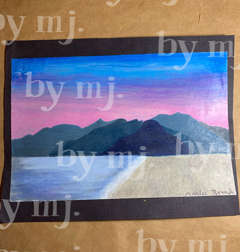 The sunset collection comes from my artwork for the Art III class I took my junior year of high school. It is the first art portfolio I ever created. I drew these all using colored pencil and used reference images for each, adding my own spin of colors and extra details.